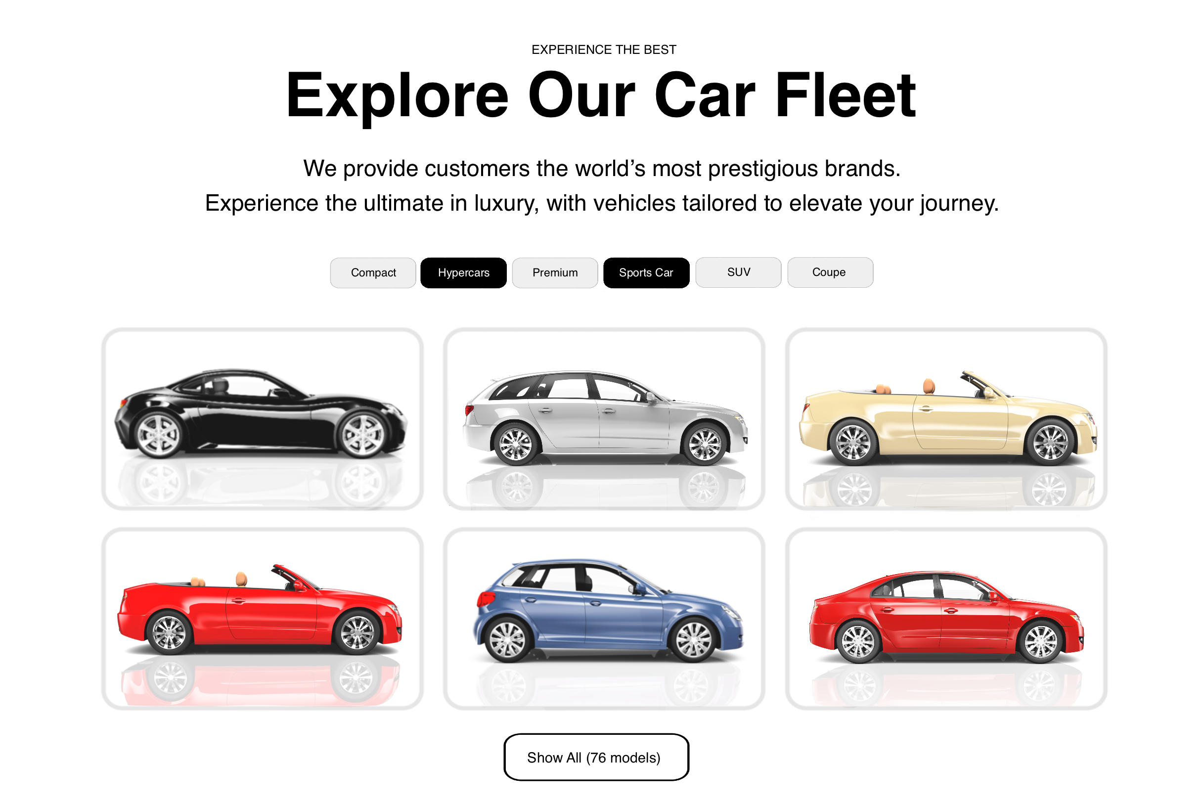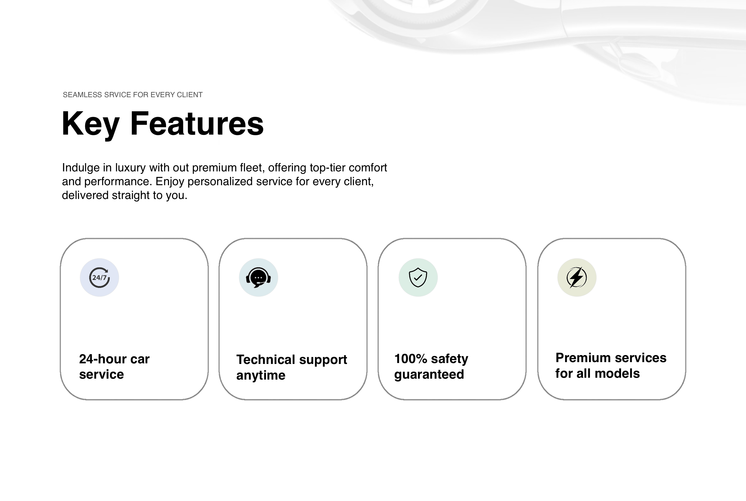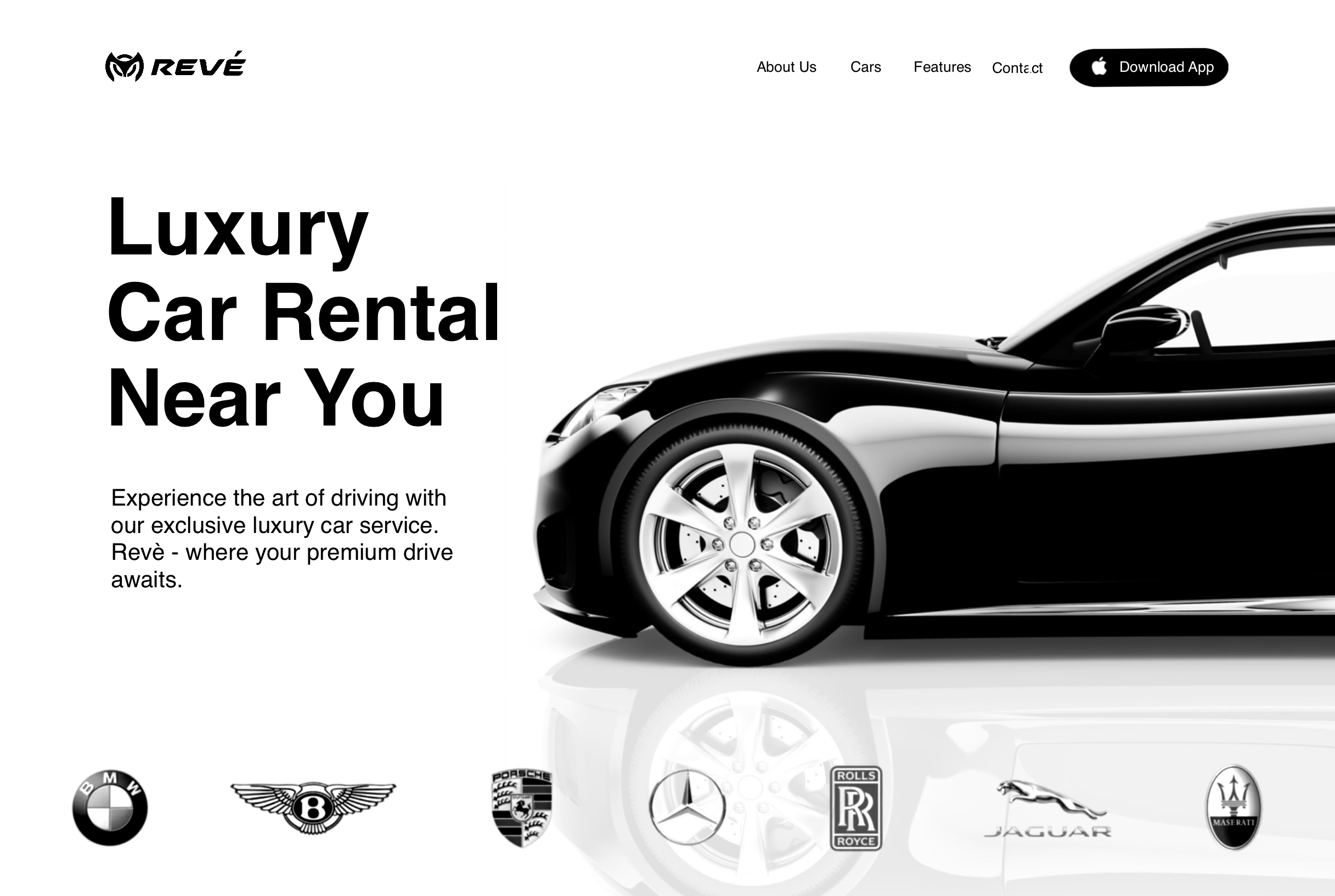 The Reve luxury car rental landing page is designed to exude sophistication and exclusivity, featuring a sleek, high-contrast aesthetic with premium imagery and refined typography. The layout ensures a seamless user experience with an intuitive booking system, a stunning fleet showcase, and strategically placed CTAs for effortless navigation. Fully responsive and visually captivating, the design enhances brand identity while maximizing engagement and conversions.