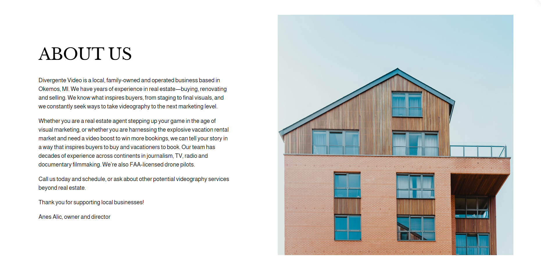 For Divergente Video Productions, I developed a comprehensive web design and brand identity to elevate their online presence in the real estate industry. The website showcases their specialized services, including property video tours, drone footage, walkthroughs, and high-quality property photography, all designed to boost property sales. I focused on creating a modern, user-friendly interface with seamless navigation to ensure potential clients can easily explore the services offered. The brand identity was crafted to reflect professionalism and creativity, with a sleek color palette and bold visuals to stand out in the competitive real estate market. The result is a polished, engaging online platform that effectively communicates the company's expertise and attracts potential clients.